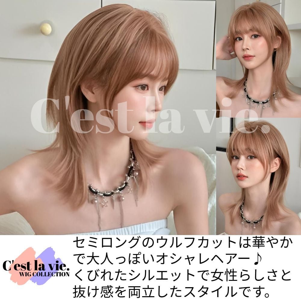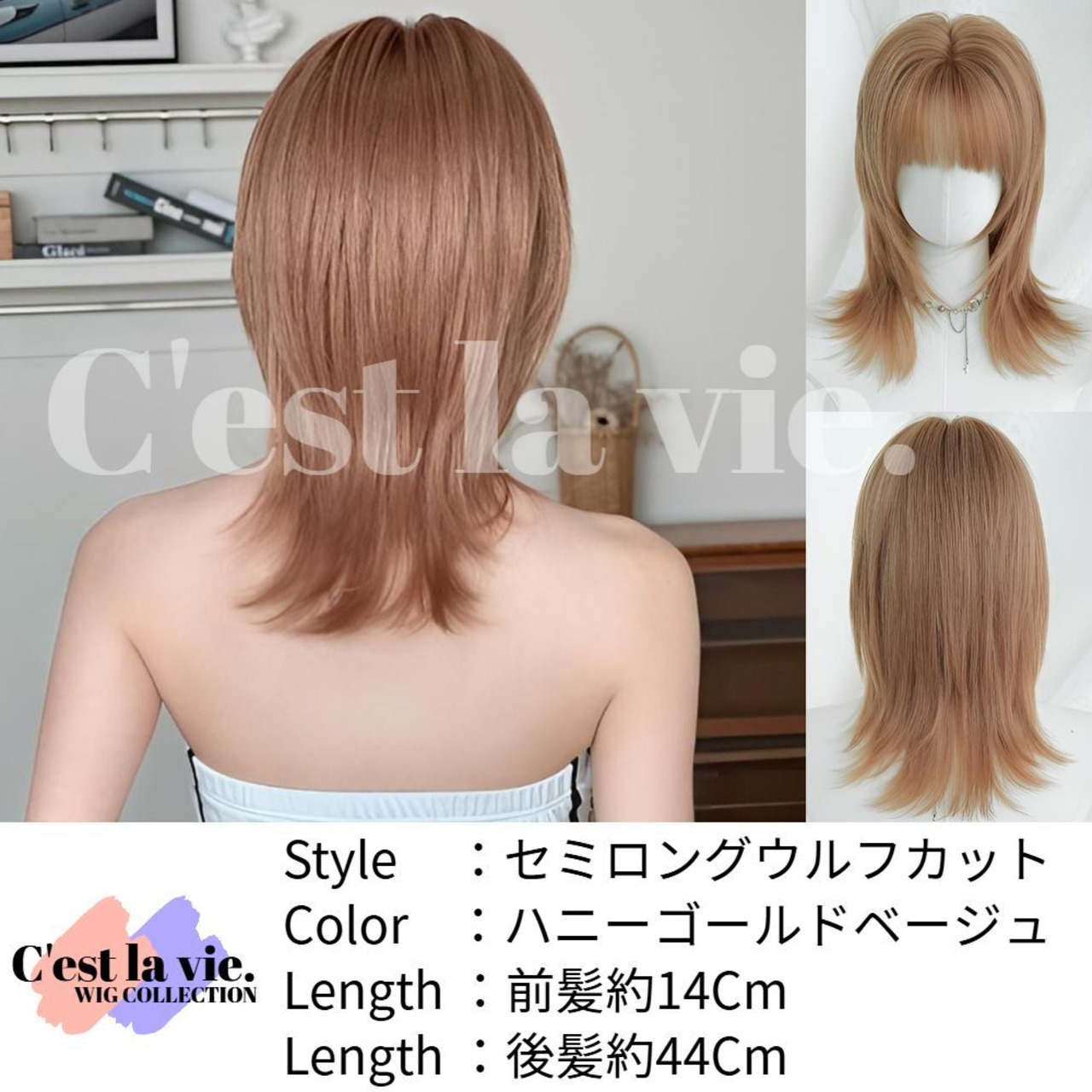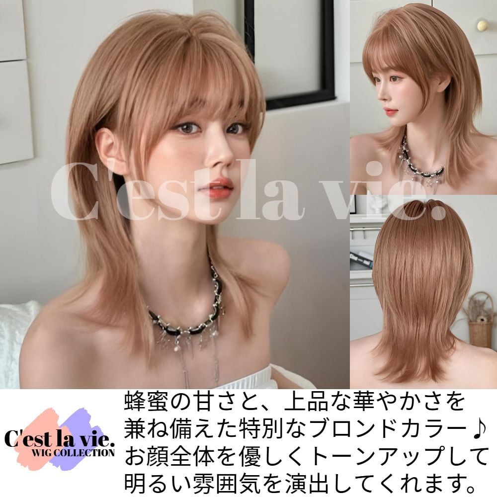 送料無料 翌日出荷 ウィッグ セミロング ウルフカット ハニー ゴールド ベージュ 小顔 自然 医療用 コスプレ フルウィッグ ウイッグ ウイック ウィック エクステ かつら wig Kポップ おしゃれ ファッション