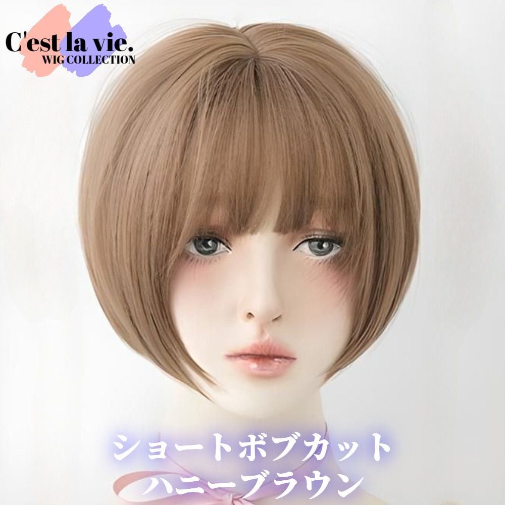 送料無料 翌日出荷 ウィッグ ショート ボブ ハニー ブラウン 小顔効果 コスプレ かつら wig Kポップ 医療用 おしゃれ ファッション