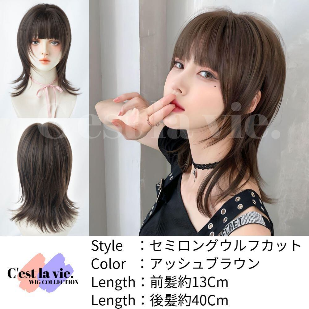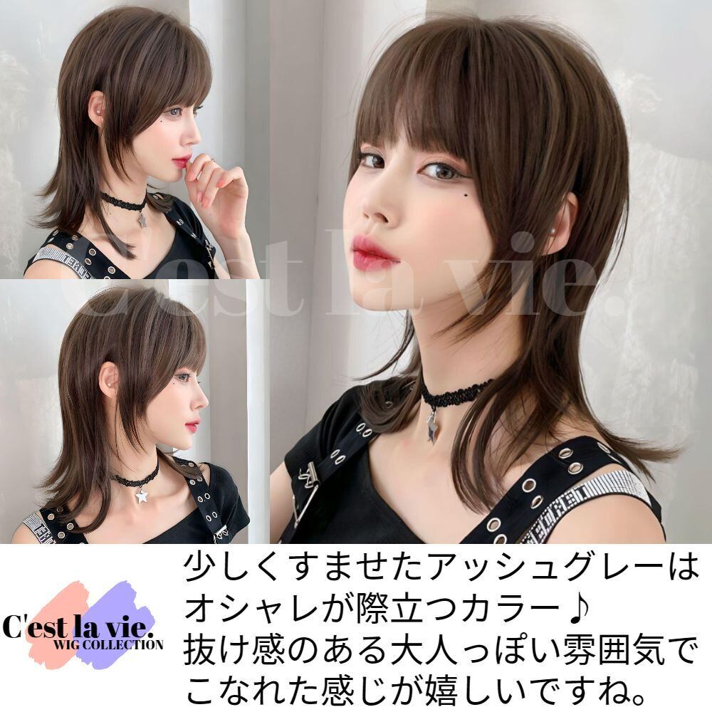 送料無料 翌日出荷 ウィッグ セミロング ウルフカット アッシュ ブラウン 小顔効果 コスプレ ウイッグ ウイック ウィック エクステ かつら wig Kポップ 医療用 おしゃれ ファッション