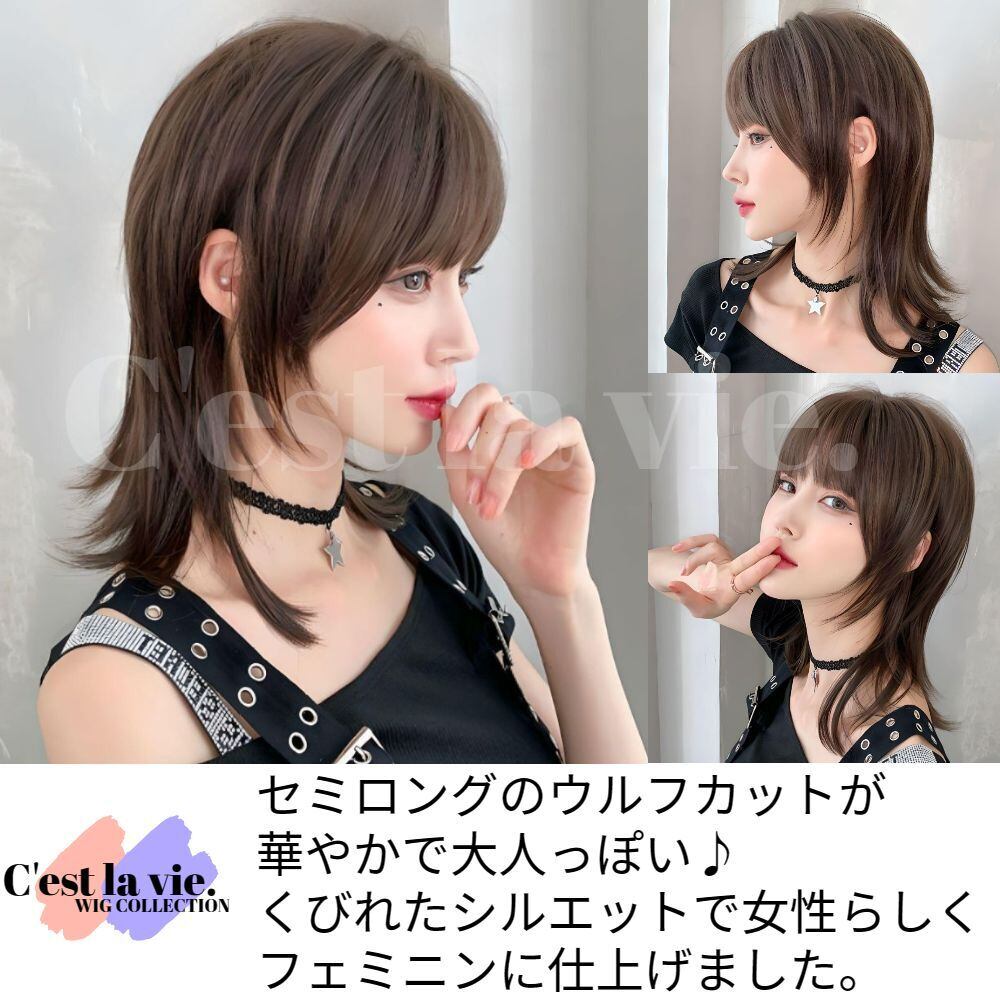 おしゃれな人がこぞって取り入れている旬のウルフカットを、大人っぽく楽しめるセミロングウルフとしてデザインしたウィッグです。