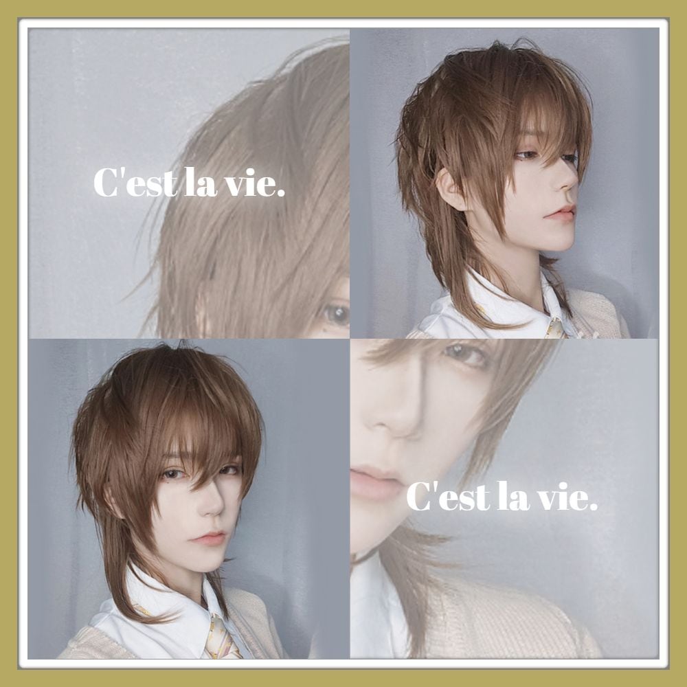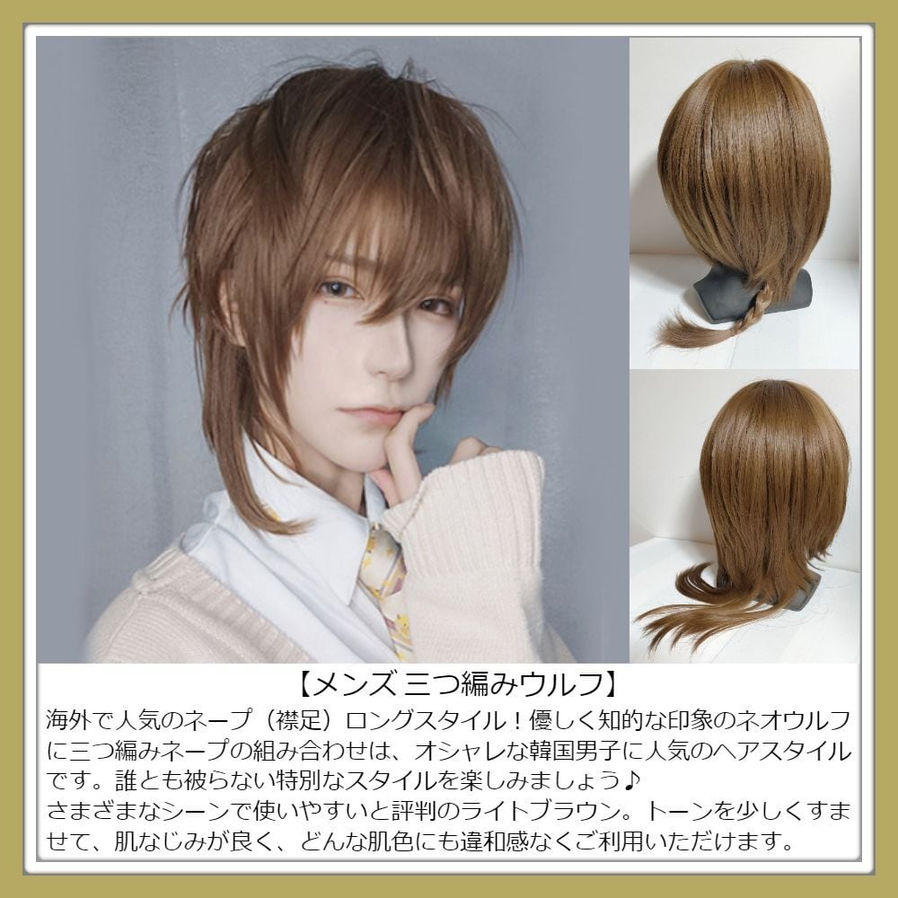 送料無料 翌日出荷 ウィッグ メンズ ウルフ 三つ編み ライトブラウン 小顔 自然 医療用 コスプレ ウイッグ ウイック ウィック エクステ かつら wig Kポップ おしゃれ ファッション
